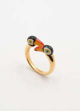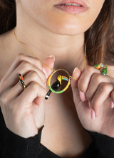 - Anillo ajustable con escultura en porcelana pintada a mano y baño de oro fino
