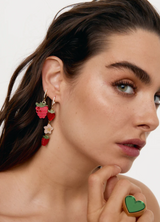 - Colores: : metacrilato rojo purpurina y verde purpurina con aplicaciones de cristal en una base de chapa bañada en oro de 24K.