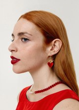 Materiales y acabado: pendiente Tiny con diseño de corazón en metacrilato, decorado con aplicaciones de cristal y montado sobre una base bañada en oro de 24K. Fornituras en plata de ley 925 bañada en oro amarillo de 24K.