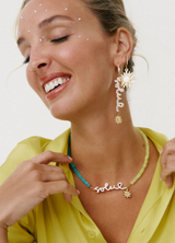 - Material: Pendiente de la palabra "Soleil" de metacrilato y sol miniatura.