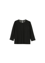 - Mangas 3/4 con detalles de encaje en los dobladillos