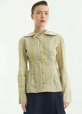Camisa rayada de poplín de algodón con manga larga y frunces en los hombros que suman volumen y un toque tierno que nos encanta. Además tiene cuello redondo tipo marinero con lazo para anudar al frente, de calce entallado gracias a las alforzas y pinzas que definen una silueta espectacular. Cierra con botones perlados a tono en el centro y en los puños, y lleva nuestro icónico moñito bordado en la parte trasera del cuello.
