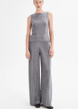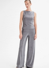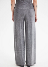 Pantalón palazzo tiro alto de lurex. Tiene cintura elástica y piernas anchas. ¡Es super suelto y cómodo, para bailar sin parar!