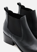 CHELSEA es un botín de diseño ideal. Hecho de cuero 100% , color negro de calce cómodo y una suela resistente, es un indispensable.