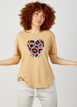 Dear Tee · Polera Always Besos – Estampado delantero corazón animal print coral y toque rebelde | 100% algodón orgánico