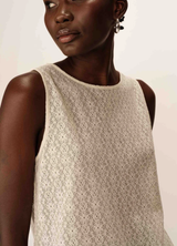 El top sin mangas PASSIONNEE revela un encanto sensual con su fino encaje y su juego de transparencias. La abertura abotonada en la espalda y el forro delantero realzan la elegancia de esta prenda femenina y refinada. El corte recto y el escote redondo del top PASSIONNEE de encaje se adaptan a todas las siluetas. Este modelo se une a nuestra colección de fibras naturales «Un Brin de Vert».