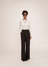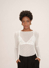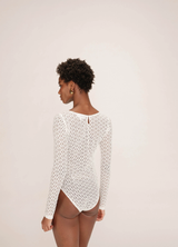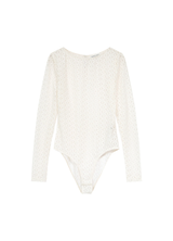 El body de manga larga TANGUY está realzado con encaje transparente para un look moderno y refinado. Detalles como la abertura en forma de lágrima en la espalda y el escote barco lo convierten en una prenda verdaderamente sofisticada. El body de encaje TANGUY presenta un corte ajustado que realza las curvas femeninas, junto con broches a presión en la entrepierna para mayor practicidad.