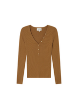 Confeccionado en punto fino y corte ajustado, el jersey de manga larga SATURNIN ofrece un efecto segunda piel y crea una silueta estilizada y cómoda. Con mangas largas y cuello en V, el jersey de canalé SATURNIN es una prenda básica de la colección, ideal para el día a día. El modelo presenta una abertura abotonada en la parte delantera y detalles de botones en el lado izquierdo del escote que realzan el escote.