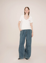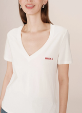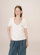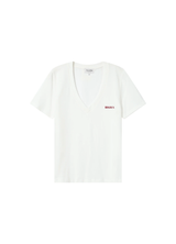 La camiseta SAMORY es un clásico de la colección: corte recto, mangas cortas y escote en V que realza la silueta. Su distintivo bordado en la parte delantera, disponible en las versiones "Grace" y "Bisous", añade un toque de personalidad sin perder su carácter informal y versátil. Confeccionada en 100% algodón para una sensación suave y transpirable.