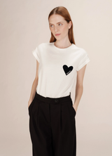 TAKE Camiseta de algodón con corazones de terciopelo | Grace & Mila