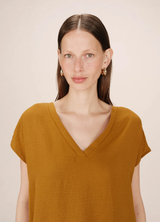 SEASON es top fluido de corte recto con mangas kimono y escote en V; cuello cómodo y femenino. 100% poliéster reciclado; talla única.