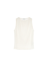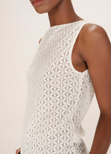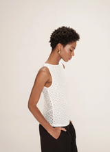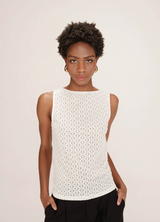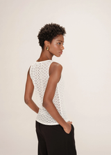 TENET es un top de encaje de la firma francesa Grace & Mila sin mangas con corte entallado; escote barco y forro delantero, espalda transparente que realza las curvas femeninas.