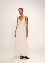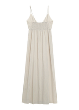 El vestido largo RAJA , confeccionado en tejido 100 % algodón y forrado en rayón, forma parte de nuestra colección de fibras naturales «Un Brin de Vert». El estampado de rayas crea líneas modernas, mientras que el escote pronunciado realza una silueta femenina y elegante. Detalles cuidadosamente diseñados, como el forro completo y el lazo en el escote, convierten al vestido de rayas RAJA en una prenda sofisticada y refinada. El corte en A estiliza la figura, mientras que los tirantes finos y ajustables garantizan un ajuste perfecto.