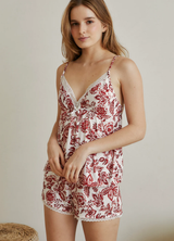 El pijama Red Serenade aporta elegancia natural a tus noches de verano con su diseño fresco y femenino. Los tirantes ajustables garantizan un ajuste personalizado para cualquier tipo de cuerpo, mientras que los delicados detalles de encaje le dan un toque romántico. Confeccionado con cuidado para un soporte confiable, este conjunto combina comodidad y estilo para un sueño reparador y placentero.