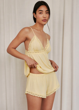 Pijama Tiritas Lime con tirantes ajustables y delicados detalles de encaje para un toque romántico y femenino. Mezcla 50/50 de Cotton Pima y Modal, diseñada para una sensación suave y una caída elegante. Fabricado en Perú para un lujo cotidiano y confiable durante las noches de verano.