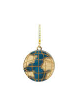 Materiales y acabado: pendiente con diseño de globo terráqueo, elaborado en metacrilato con detalles tipo espejo y aplicaciones de cristal, montado sobre una base en chapa bañada en oro de 24K. Fornituras en plata de ley 925 bañada en oro amarillo de 24K.