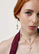 Entre cruces y estrellas, el universo se vuelve joya. Los Holy Universe mezclan cielo y tierra, brillo y fe, con la naturalidad de quien no elige: lo quiere todo. Un pequeño cosmos dorado que brilla con devoción y descaro a partes iguales.