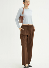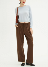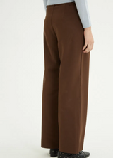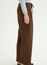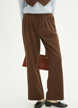 Pantalón sastrero de tiro bajo y piernas anchas. Tiene cintura doble tableada, pinzas delanteras, bolsillos laterales y un lazo finito para ajustar que le da un toque chic y canchero.