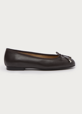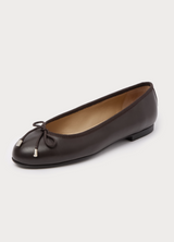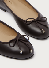 Nuestras nuevas bailarinas Emilia en color chocolate y con punta redonda, en la parte superior llevan un elegante lazo con detalles metálicos en dorado. Están confeccionadas en suave piel de vacuno con un diseño atemporal que garantiza comodidad y elegancia sin esfuerzo. Una opción versátil para realzar tu look diario y agregar un toque refinado a cualquier outfit. Diseñadas y fabricadas integralmente en España.