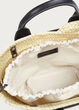 Capazo Aria Black de Carnevale Madrid es el bolso perfecto para aportar un toque sofisticado a tus looks tanto en la playa como en la ciudad. Elaborado artesanalmente con hojas de palma y decorado con una original y elegante estructura en piel y asas muy prácticas de piel de vacuno en tono marrón, cuenta con el grabado del logo Carnevale en color oro. También incluye un asa bandolera en piel para poder llevarlo cruzado para una mayor comodidad. En su interior incluye un saquito en algodón premium que le aporta mayor sofisticación y seguridad.