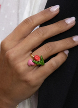 En Viens, on sème! cada pieza es una invitación a sembrar belleza y emoción. Y este anillo lo dice todo con dos íconos que hablan directo al corazón: un tulipán rojo y un corazón.
