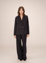 SUREAU: blazer de sastre cruzado con cuello de solapa de muesca, corte recto y bolsillos de ribete. Una prenda estructurada, atemporal y con carácter, ideal para una silueta elegante y contemporánea, Grace & Mila, firma francesa, disponible en Chile exclusivamente a través de Bloom Stage.