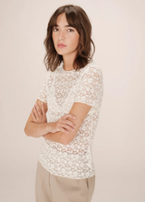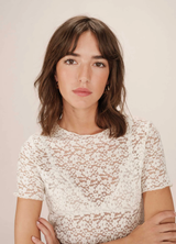 La camiseta de manga corta SWIFT es una prenda con un look sensual y moderno. Confeccionada en encaje elástico, su diseño se adapta a las curvas para una silueta femenina y segura. Los acabados ondulados en el escote, los puños y el bajo la convierten en una prenda refinada y elegante. El escote redondo y el corte ajustado de la camiseta de encaje SWIFT logran un equilibrio entre elegancia y audacia.