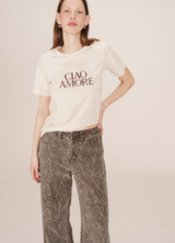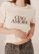Camiseta SOFT de manga corta con mensaje CIAO AMORE IVOIRE | 100% algodón, terciopelo