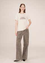 SOFT es una camiseta esencial en algodón, con un estampado en terciopelo del mensaje CIAO AMORE. Corte recto, cuello redondo y manga corta para un look limpio y moderno.