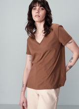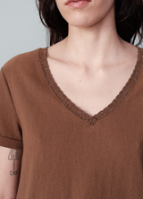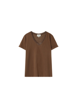El top NOA de Grace & Mila, marca de moda europea, es un básico brillante y versátil para cualquier armario, presenta un escote en V realzado por un ribete de lúrex que aporta un toque de elegancia y resplandor.