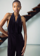 Femenino y sofisticado, el mono TAHARA está confeccionado en terciopelo, creando un elegante efecto drapeado. El escote en V cruzado se ata alrededor del cuello, realzando la espalda abierta. Con una cremallera trasera invisible, el mono de terciopelo TAHARA se adapta a las curvas femeninas.