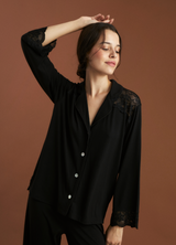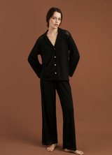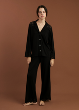 ¡Un ícono de la colección de la firma In Bloom! El PJ Boyfriend Vera Bridal Edition Ivory se caracteriza por la sutil caída que acentúa la figura. Resalta por el encaje en las mangas y pantalón.
