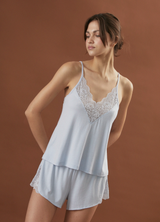 El PJ Tiritas Bridal Soft Sky de la firma In Bloom tiene un estilo sutil y delicado. Está hecho de su característico Algodón Pima Modal para que disfrutes de la máxima suavidad. El encaje en el escote hace del top una pieza única. Además, cuenta con tiras ajustables para mayor comodidad.