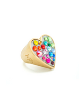 El anillo de corazón brilla con una sinfonía de colores, como un arcoíris eterno. Cada cristal, engarzado con esmero, irradia destellos de amor y alegría, transformando lo cotidiano en una celebración vibrante. Su diseño delicado parece palpitar con vida, recordándonos que siempre hay luz incluso en los días nublados. Con cada mirada, susurra promesas de amor infinito y belleza en los detalles más brillantes de la vida.