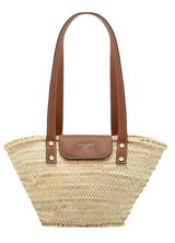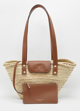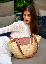 Capazo Vera es el bolso perfecto para lucir tanto en la playa como en la ciudad. Realizado artesanalmente con hojas de palma y decorado con asas y solapa en piel de vacuno color marrón, con logo Carnevale grabado en color oro. En el interior incluye un pequeño neceser de cuero desmontable para proteger tus pertenencias con mayor seguridad.