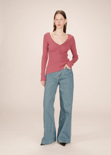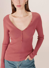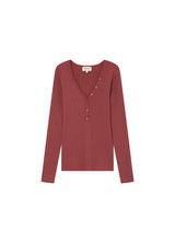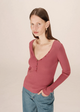 Confeccionado en punto fino y corte ajustado, el jersey de manga larga SATURNIN ofrece un efecto segunda piel y crea una silueta estilizada y cómoda. Con mangas largas y cuello en V, el jersey de canalé SATURNIN es una prenda básica de la colección, ideal para el día a día. El modelo presenta una abertura abotonada en la parte delantera y detalles de botones en el lado izquierdo del escote que realzan el escote.