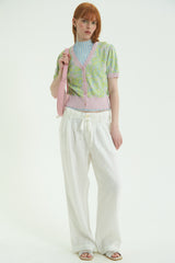 CARDIGAN TEJIDO MIKI VERDE Y ROSA
