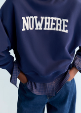 Un cómodo poleron corta con cuello alto acanalado y un llamativo estampado NOWHERE en la parte delantera de la firma española The New Society. Fabricada en algodón orgánico cardado por dentro y por fuera para mayor suavidad y calidez, perfecta para el día a día.