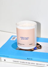 Una vela para prolongar las buenas conversaciones, las que cambian el mundo o simplemente te hacen reír tanto que te duele la barriga con notas a Flor de algodón, pachuli, sándalo y vainilla.