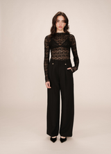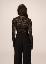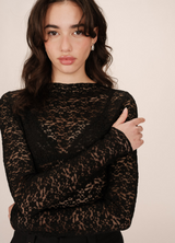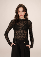 Camiseta SHADY de encaje elástico NOIR Corte entallado, mangas largas y escote alto