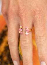 El anillo está fabricado para que sea ajustable, con escultura hecha en porcelana y anillo con baño de oro fino.