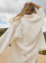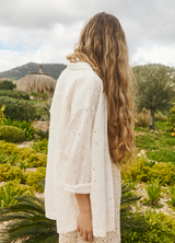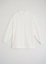 Camisa de corte clásico y cuello camisero de la firma española INDI & COLD. Tiene aberturas en el bajo. Tejido de algodón orgánico con bordado suizo y un fit relajado muy cómodo para el día a día.