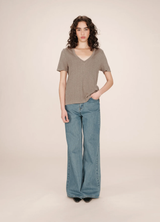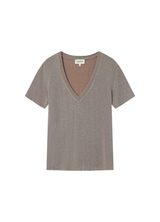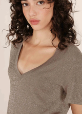 CAMISETA de cuello en V de lúrex color greige Stardust