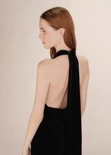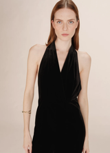 Femenino y sofisticado, el mono TAHARA está confeccionado en terciopelo, creando un elegante efecto drapeado. El escote en V cruzado se ata alrededor del cuello, realzando la espalda abierta. Con una cremallera trasera invisible, el mono de terciopelo TAHARA se adapta a las curvas femeninas.
