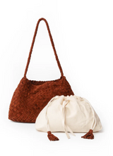 Novara es uno de nuestros modelos más populares. Tejido a mano con un punto apretado con un suave cuero de la mejor calidad. Ahora renovada con una base para poder resistir mejor el peso de tu bolso.