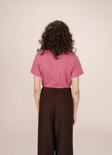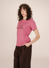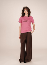 SOFT es una camiseta esencial en algodón, con un estampado en terciopelo del mensaje CIAO AMORE. Corte recto, cuello redondo y manga corta para un look limpio y moderno.