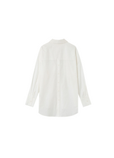 La camisa de algodón NESRINE es un must have en la colección. La camisa oversize NESRINE tiene un cuello clásico y mangas largas con puños abotonados que firman su pertenencia al armario masculino. Grace & Mila reinventa esta moda atemporal en una versión más femenina y contemporánea. La tapeta de botones en la parte trasera subraya la originalidad y versatilidad de esta pieza. La camisa NESRINE se une a nuestra gama de fibras naturales 'Un Brin de Vert'.